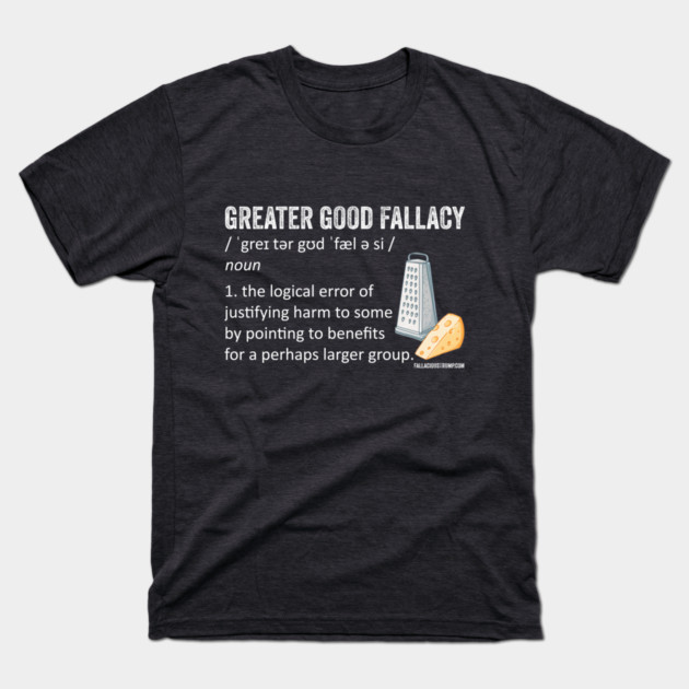The Greater Good Fallacy is committed when someone claims you should accept their argument or make some sacrifice because it’s for the greater good of everyone. It is a specific form of Thought Terminating Cliché