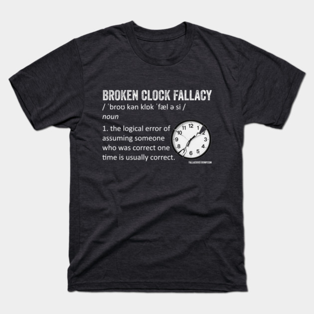 The Broken Clock Fallacy occurs when someone suggests that because they were right once (even if it was for the wrong reason) they should be trusted generally.