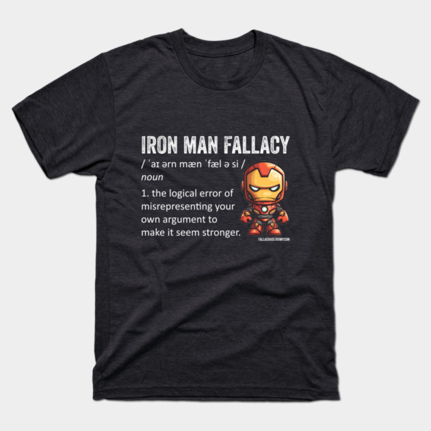 The Iron Man fallacy is committed when someone misrepresents their own position (or one they agree with) to suggest it is in fact a much stronger position that nobody could argue with.