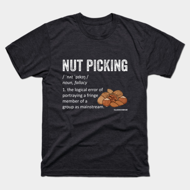 Mark: And I’m your other host, Mark. A logical fallacy is an error in reasoning that results in bad or invalid arguments. And the logical fallacy we’re looking at this week is the Nutpicking fallacy. I think it’s the first fallacy that uses outrageous pun.
