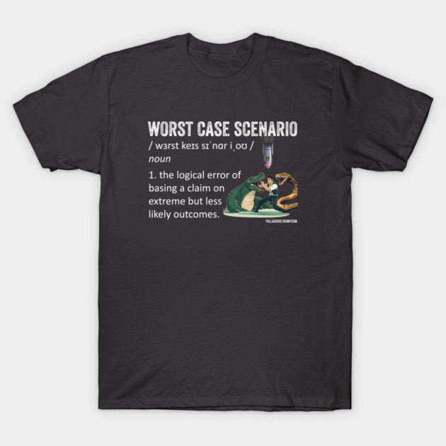 Jim: So the worst case scenario fallacy is kind of a version of the appeal to fear, which is an appropriate one to do for Halloween week. Yeah. And it is when someone argues their case based on the worst case scenario, rather than the much more likely probable scenario. In doing that, they’re appealing to fear and saying, look, if we don’t do something, or if we do do something, this is what will happen, and it’ll go as bad as it could possibly go.