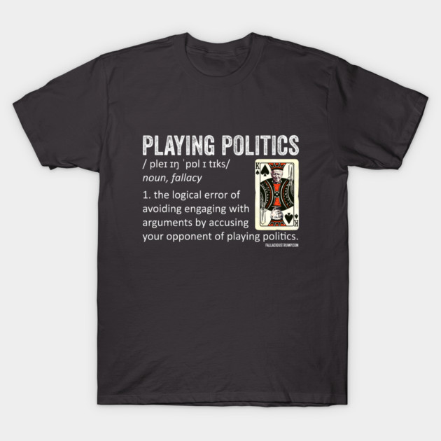 The Playing Politics fallacy occurs when someone avoids engaging with an argument by claiming their opponent is merely ‘playing politics’ when in fact they are trying to effect change.
