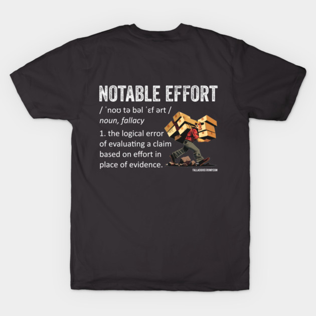 Jim: Meanwhile, notable effort. This is where effort is used as the metric for whether you should give a claim, any credence or not, or kind of reward someone rather than the outcome or ideally, evidence. And so when someone, if someone was to claim that, you should believe them because they worked really hard on figuring out, their point of view and put a lot of effort into it. That isn’t really what that should be based on.