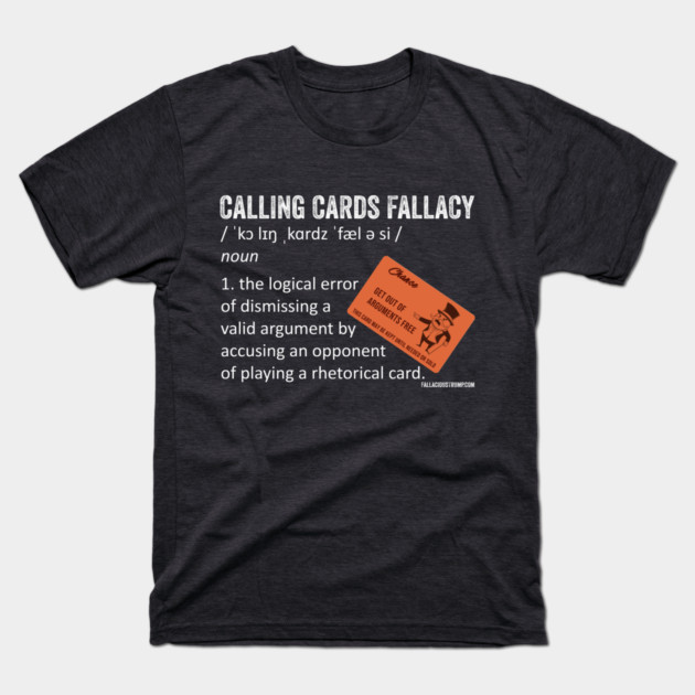 The Calling Cards Fallacy occurs when someone dismisses a valid point by accusing their opponent of playing a rhetorical card.