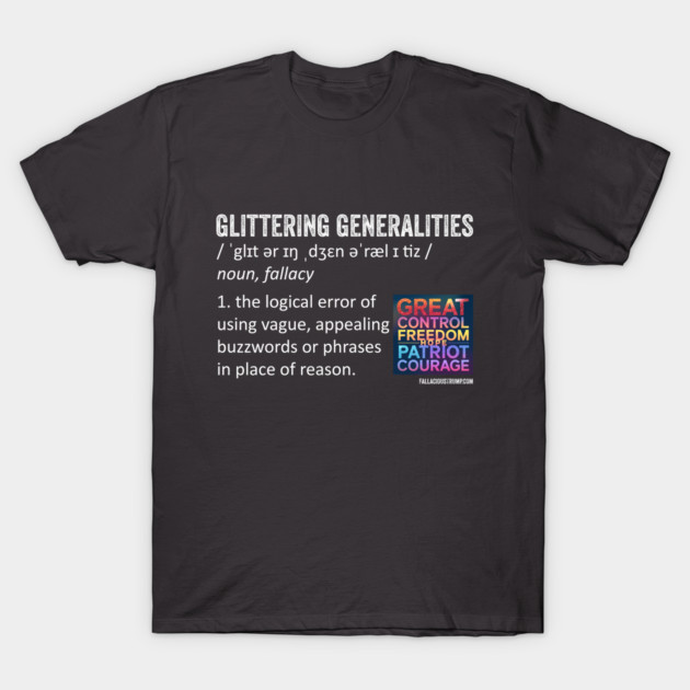 The Glittering Generalities Fallacy occurs when someone uses vague, emotionally appealing phrases in place of reason.