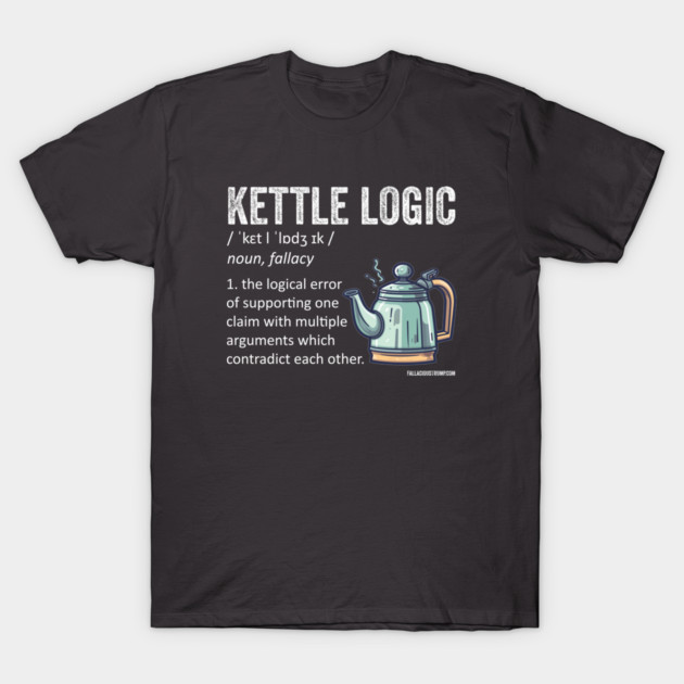Kettle Logic is when multiple arguments are presented at once, often overlapping or contradicting each other, without acknowledging the contradictions.