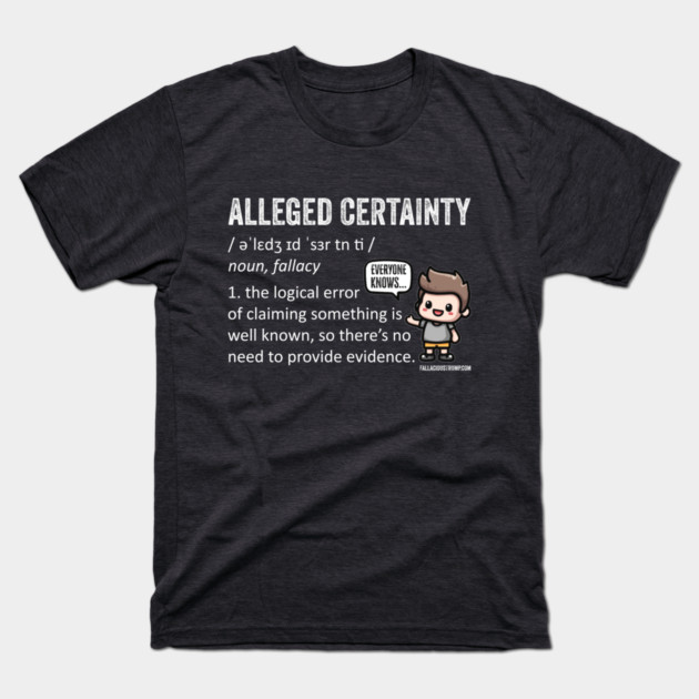 The Alleged Certainty Fallacy is committed when someone makes a claim and then alleges that everyone knows it’s true, thereby avoiding the need to offer any evidence.