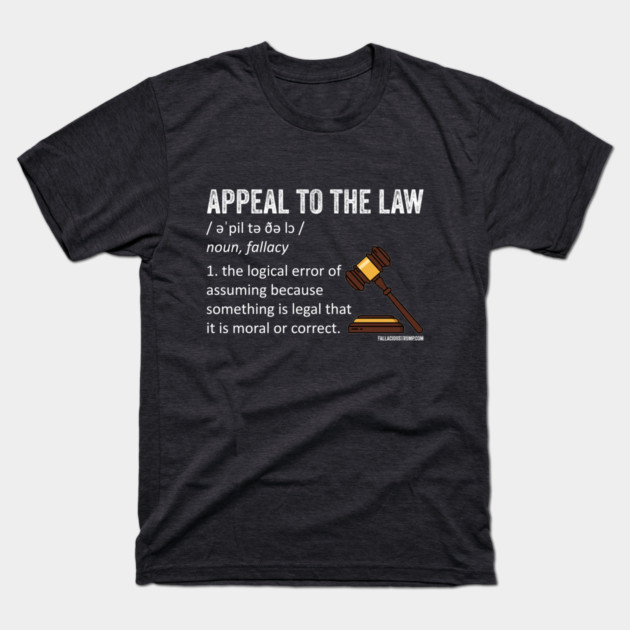 The Appeal to the Law is committed when someone equates the legality of an act with its morality, i.e. saying whatever they did was fine, because there’s no law against it.