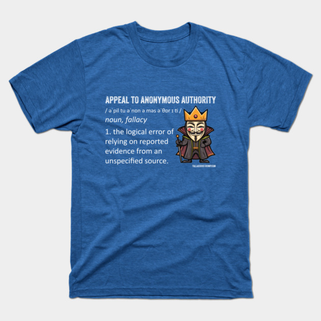The Appeal to Anonymous Authority is committed when someone cites an authority to back up a claim, but the authority is unnamed, vague or similarly uncheckable.